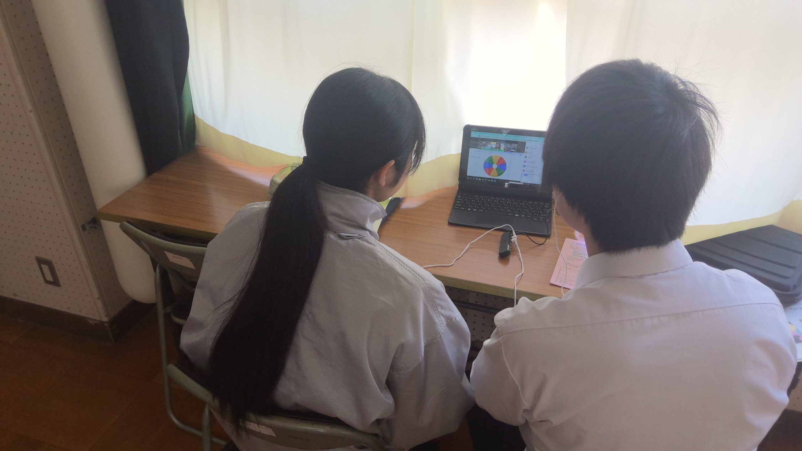 オンライン国際交流は英語科の授業において、生徒用タブレット端末を使用して、同年代の外国の子どもたちとオンラインでやり取りを行うものです。今年度は、三重県教育委員会の指定を受けて、西陵中学校が挑戦しており、9月29日(月)に続いて、2回目の取り組みとなりました。