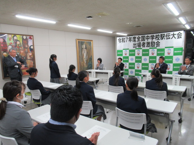 12月12日(金)に、令和7年度全国中学校体育大会第33回全国中学校駅伝大会出場者激励会を実施しました。