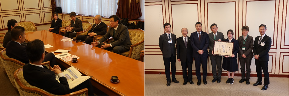 四日市市立中部中学校が「第18回キャリア教育優良教育委員会、学校及びPTA団体等文部科学大臣表彰」を受賞し、その報告のため市長を表敬訪問しました。