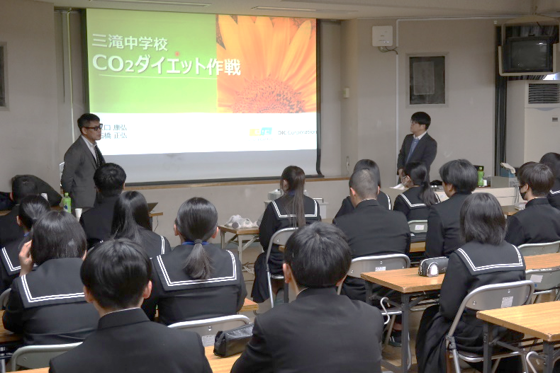 2月10日、DIC株式会社の企業連携出前授業が三滝中学校3年生で実施されました。
