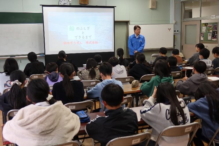 2月27日、鈴木造船株式会社の企業連携出前授業が桜台小学校5年生で実施されました。