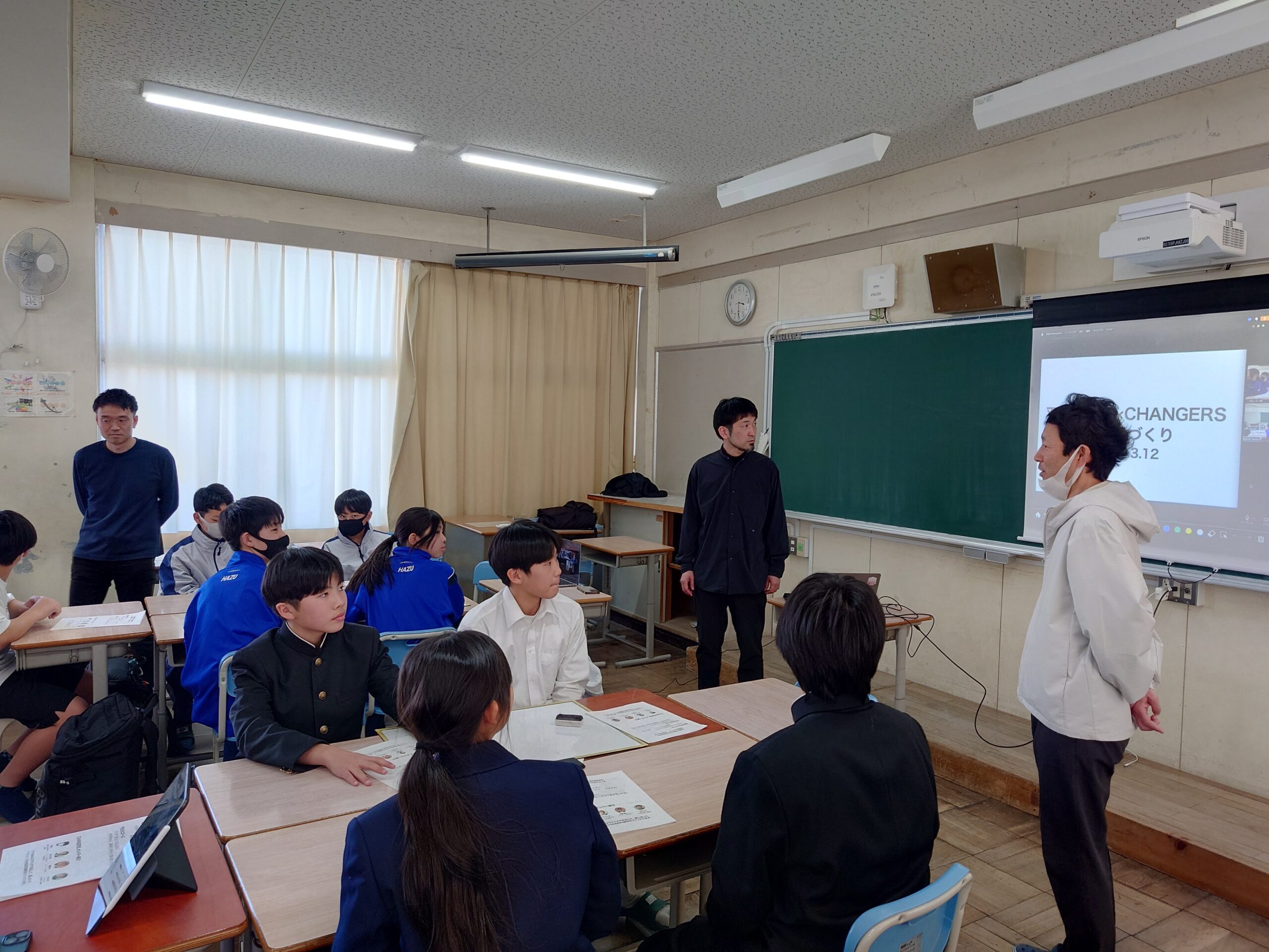 3月12日(木)に羽津中学校1年生の有志が集まり、Changersの教材づくりを行いました。Changersとはいじめ防止の漫画教材で、いじめ相談アプリのスタンドバイ株式会社が中心となり、大学教授、編集者、漫画家が協働して教材開発をしています。